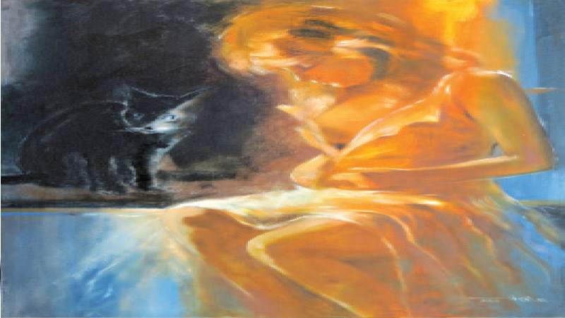 يجنح نحو التلخيص والتبسيط، وبألوان أكثر مباشرة وصراحة يستمدها من البيئة المصرية حوله ما بين البرتقالى والأخضر والأحمر والبنفسجى والأصفر، ولكنه يضعها على سطح لوحته بحساب شديد، واختار فى معرضه اليوم المرأة موضوعه وأطلق عليها «هي». يحاول الفنان أن يجد لغته الخاصة ومعرضه ما هو إلا رحلة بحث عن هذه اللغة. والفنان عصام طه يقدم أكثر من خمسة وخمسين لوحة بالألوان الزيتية والأكليرك والمائية. فى لوحاته الزيتية والأكليرك والتى يرسمها بدرجات متوسطة التون من الألوان وإن حافظ أحيانًا على صراع الألوان المكملة مثل الأصفر والبنفسجى والذى يظهر فى أكثر من لوحة، وفى أعمال أخرى يروض الألوان المكملة مثلما يفعل بين الأخضر والأحمر ولكنه يحافظ على الهارموني، ويتجاهل تمامًا التفاصيل ويلخص مساحات الضوء والظل من أجل البحث عن البساطة والتلخيص وتظهر الخطوط وتختفى لتعبر عن الجسد الإنسانى فى برقته. ولكن هناك تيمة القط دائمًا موجودة بلوحاته بجوار المرأة، يدهشك به الفنان ويلقى على المشاهد بظلال من الغموض ليجعله يتساءل ويحاول أن يجد تفسيرًا لوجودها، وما معنى ظهوره فى اللوحة، ولكن القط متناغم دائمًا مع ألوان اللوحة ويخضع للونها السائد ويلعب دورًا فى اتزان التكوين. فى لوحات الفنان المائية والتى تميز فيها منذ سنوات واستطاع أن يروض تلك الخامة الصعبة والتى يهرب منها الكثير من الفنانين ولا يمارسها إلا قلة، هو اليوم يملك ناصيتها باقتدار ويقدم بها رسومًا تفيض بالطزاجة والشفافية والجمال وكثيرًا ما يترك جزءًا من تكوين اللوحة بلون الورق الأبيض لتكمله العين كمحاولة للبحث عن البساطة، وهو تطور ملحوظ فى مائياته، رسومه معظمها لبنات جميلات ومناظر من القاهرة الفاطمية ولكنه يحافظ فى لوحاته على البقعة الغامقة والتى تجعل لمائياته ثقلًا واتزانًا، عكس لوحاته الزيتية والتى تنتمى معظمها إلى التونات متوسطة الدرجة. المعرض تجربة فنية جديدة للفنان وتعبير عن قلقه ومحاولته للخروج مما كان يقدمه من قبل، وليس غريبًا على الفنان الصادق أن يحاول اكتشاف آفاق وأحلام جديدة لفنه لم يذهب لها من قبل.