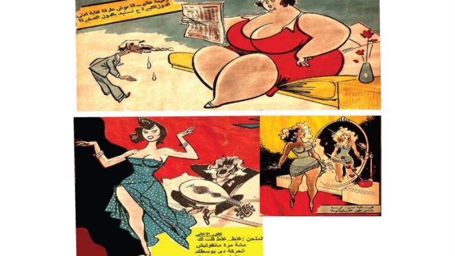 ومن بين رواد تلك المدرسة بهجت عثمان الذى تميزت رسومه فى خطوط غنائية رفيعة.. مفعمة بالسخرية من الأصوات الإذاعية وبكائيات فريد الأطرش ووسوسة عبدالوهاب بالمنديل على الأنف.. ومشاجرات سومة وحليم أيهما يغنى أولاً.. ولمع فى «المجمع اللغوى» ساخرًا من الهوة بين اللغة والحياة..وهارون الرشيد «منتقدًا وضع المرأة فى المجتمع و«الفرخة والديك»..مستعيرا من حياة الطيور موضوعًا للسخرية من السلوك الإنسانى السلبى.