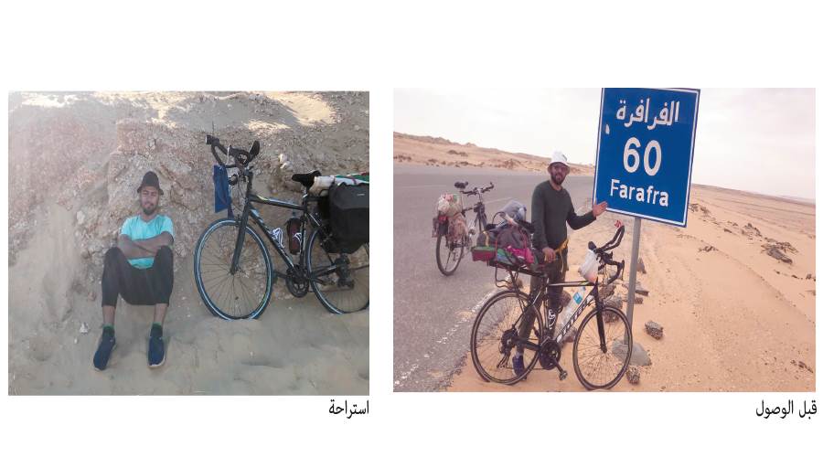 وبدأت رحلة العزلة عن العالم وبدأ الجسد فى التأقلم مع الطريق فكلما سرت بالدراجة فأنت تقوم بتنشيط جسدك اقترب موعد الفجر وسكون الليل وهدوؤه يرافقنى فى رحلتى الجميلة والسماء صافية منيرة بنجومها اللامعة لا يوجد أى شىء على الطريق فهى صحراء جرداء ولكنها مليئة بالهدوء والسكينة تساعدك على التأمل.