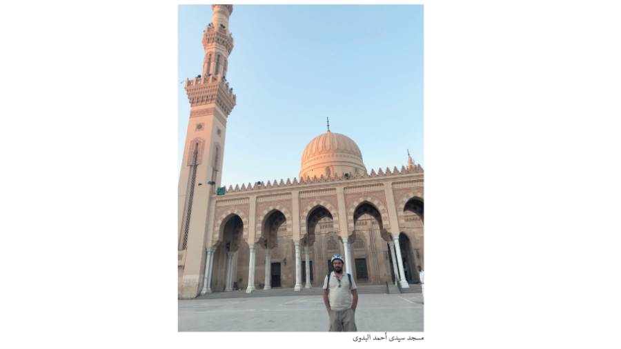 درجة الحرارة بدأت فى تزايد مستمر، واشتد علىّ العطش، ولكن جمال الطريق والخضرة كانوا رفاق الرحلة التى تهون عليك مشاقها، وبعد مسافة 90 كيلومترًا كانت مدينة طنطا عاصمة محافظة الغربية فى استقبالى، وكانت وجهتى لزيارة مسجد سيدى أحمد البدوى أحد المعالم السياحية فى محافظة طنطا، فهو إمام صوفى وينتهى نسبه إلى سيدنا الحسين بن على بن أبى طالب، من مواليد مدينة فاس بالمغرب وسمى بالبدوى لأنه دائمًا كان يغطى وجهه باللثام مثل أهل البادية.