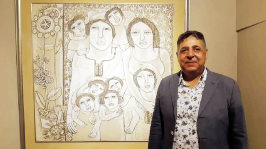 فى جزيرة الأحلام.. أرض الهائمين بالمحبة والأمان.. التلاحم البشرى الذى يحمل معه الدفء وروح العائلة الكبيرة .. إنها «يوتوبيا» الطفولة التى تمناها الفنان الكبير د. «هانى رزق» أستاذ التصوير بكلية التربية الفنية، وجسدها فى لوحاته بكل ما يحمله من معانِ ورؤى حالمة بأبطالها المحبين والوجوه التى تحمل لمن يراها الشوق ودعوة مفتوحة للمشاركة فى أحلام المودة، إنها نفس الوجوه التى نألفها.. نعرفها وتعرفنا ومن فرط المحبة المتبادلة نصبح جزءًا فى لوحات المحبة نشاركها أفراحها وهمومها.