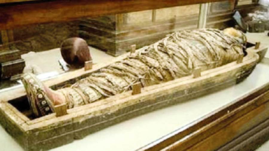حرص الفراعنة على إخفاء رأس جثة الفرعون بعد موته وكانوا يبقونها طوال الوقت تحت غطاء رأس خاص يسمى «هيميس».. وقد عُثر على نموذج ذهبى لهذا النوع من أغطية الرأس فى مقبرة الفرعون توت عنخ آمون.