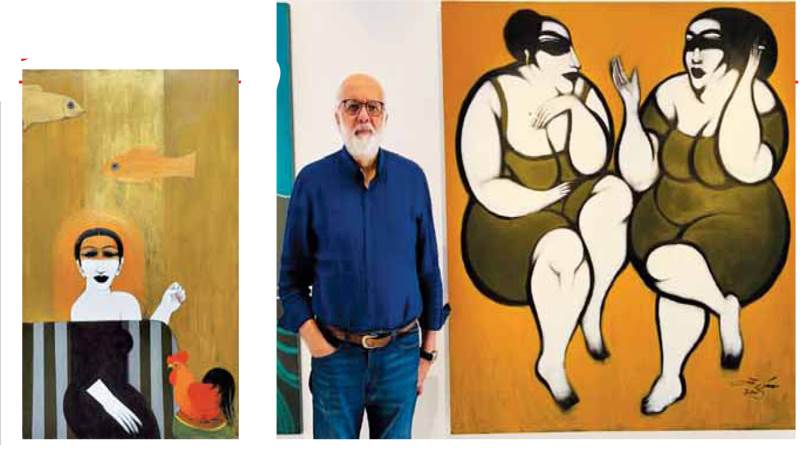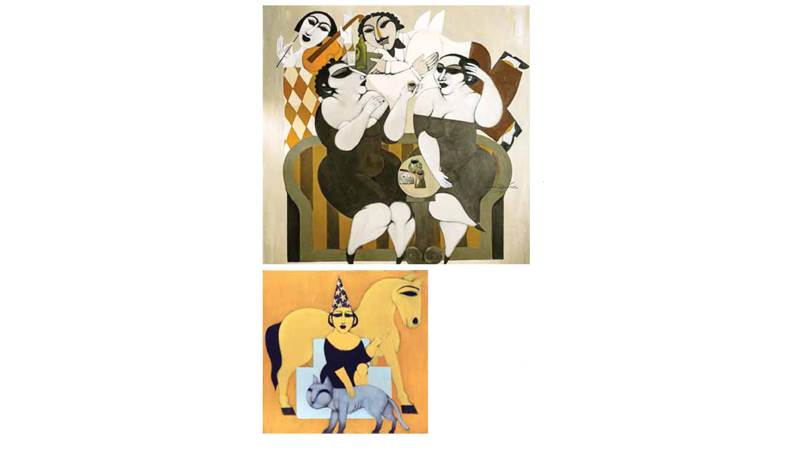 مساحاته البيضاء تُملأ بحنين وعرفان لا يبدد «يصل الفؤاد ويسكن» لا يرحل .. طيوره تستكين بالقرب تنشر سلاما.. ترى خيلا وخيالا تستحال لبلاد الأساطير المروية، تتواتر علينا بحقب خيال.. نساء فرشاته ترجع بنا بصدى فن كبير مختصرا خطوط.. ساحبا لألوان لوحاته تملأ سداها ولحمتها حب وفرحة.