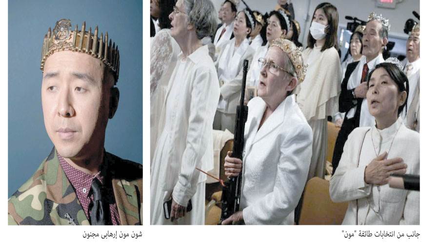 فى كل حفلات ومناسبات «كنيسة التوحيد» المزعومة حاليًا نرى شون مون بردائه الأخضر وتاجه المصنوع من فوارغ الرصاص ويبدأ اجتماع الصلاة وأعضاء الكنيسة واقفين وأمام كل عضو منهم سلاح الأر بى جى، بينما هناك منطقة مكتوب عليها أنها خالية من السلاح وهذه مخصصة للأطفال يمارسون فيها العنف بصورة مختلفة عن طريق اللعب بالدمى وخنقها!