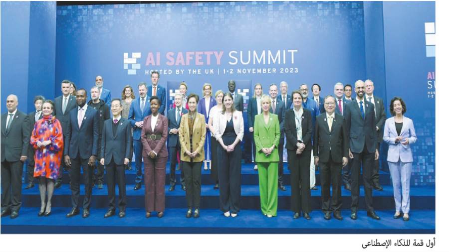 على جانب آخر، عقدت أول قمة عالمية لـ«الذكاء الاصطناعى»، استضافتها بلدة «بلتشلى بارك» البريطانية، فى الأول من نوفمبر 2023 أيضًا، التى انتهت فى اليوم الثانى بـ«إعلان بلتشلى»، الذى وقعت عليه 28 دولة، بينها الولايات المتحدة والصين، إضافة لدول الاتحاد الأوروبى، بخصوص الحاجة إلى ضوابط فى مجال تكنولوجيا «الذكاء الاصطناعى المحدود» الذى يتصل بنماذج ذات أغراض عامة عالية القدرات، بما فى ذلك كيفية قياس هذه المعايير، ومراقبة وتخفيف القدرات الضارة المحتملة.